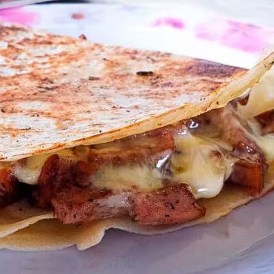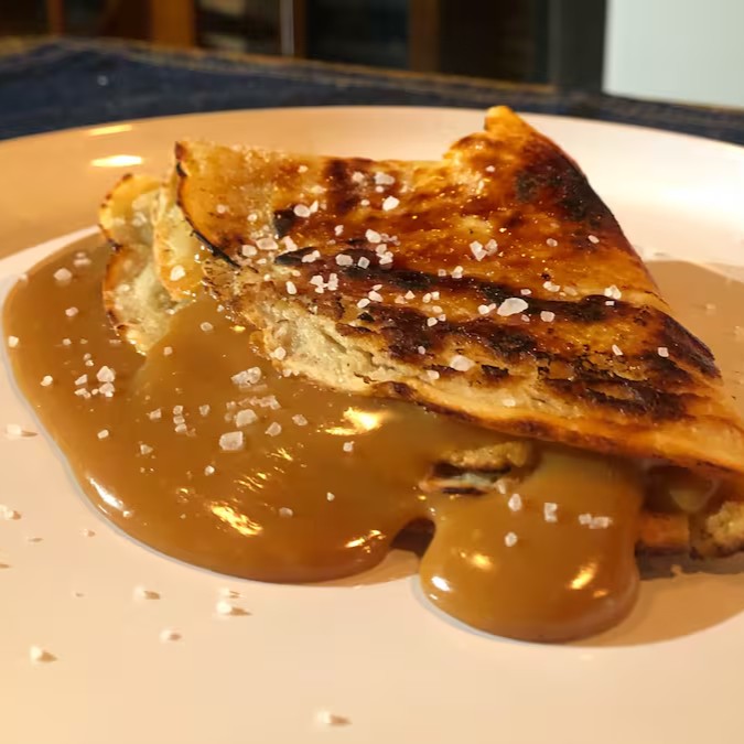 Crepe artesanal de massa crocante, recheado com carne seca desfiada, queijo muçarela derretido e banana da terra frita na manteiga. Para completar, um toque cremoso de requeijão e finalização com orégano, garantindo um sabor autêntico e irresistível!