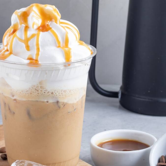 Espresso duplo, calda de caramelo, gelo e finalização com chantilly. Refrescante, cremosa e perfeita para adoçar o Dia.