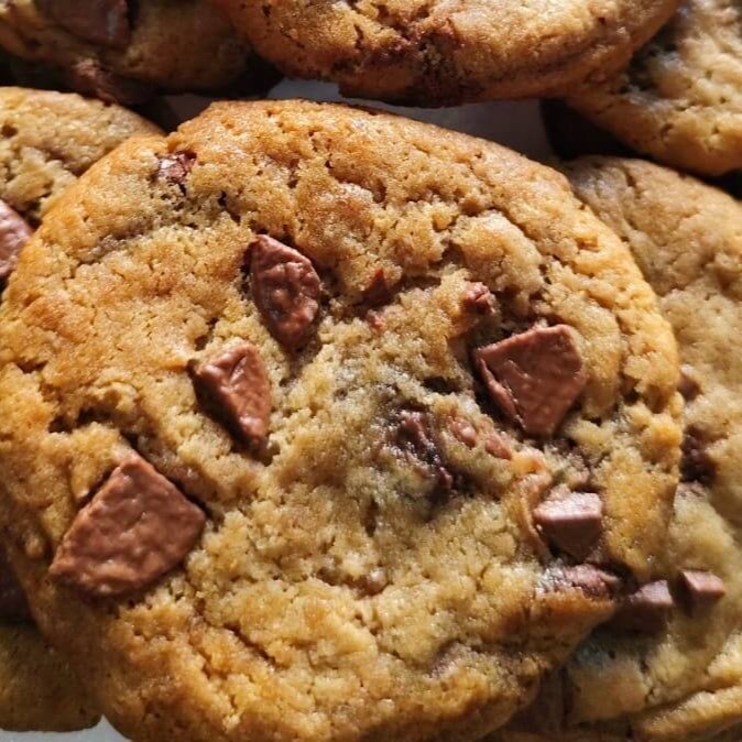 Massa de biscoito tipicamente americano, com gotas de chocolates e generoso recheio de Nutella*. Deve ser servida aquecida.