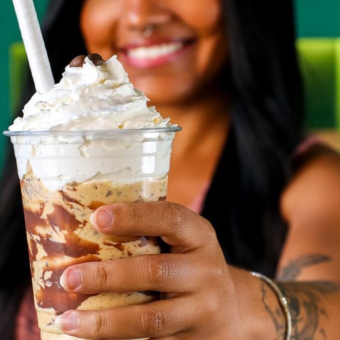 Leite batido com sorvete de creme, chocolate, espresso duplo curto, finalizado com chantilly e cacau em pé. O queridinho!