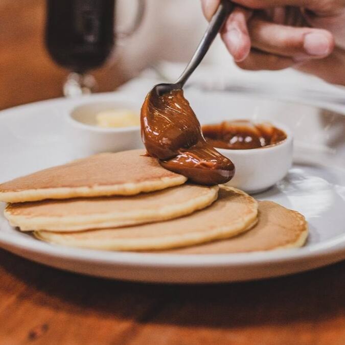 4 unidades de panquecas macias com manteiga, servidas com um adicional à sua escolha: Nutella*, doce de leite ou mel. Um clássico para começar bem o Dia — ou terminar melhor ainda.