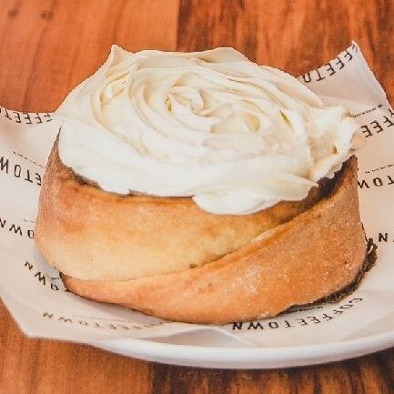 Rolinho de pão macio com açúcar mascavo e canela, finalizado com cobertura cremosa de cream cheese. Aquele clássico americano que derrete na boca.