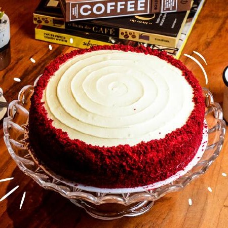Torta a base de cacau alcalino. Recheada e decorada com frosting de cream cheese.