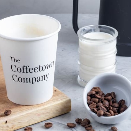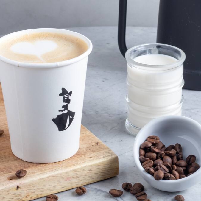 Espresso com leite vaporizado e crema do leite. Não utilizamos pré mix nesse produto. Apenas café e crema do leite. Para uma bebida adocicada recomendamos Chai Latte ou Chocolate Quente.