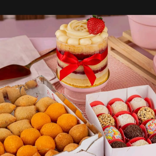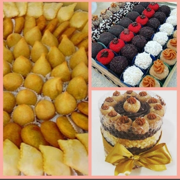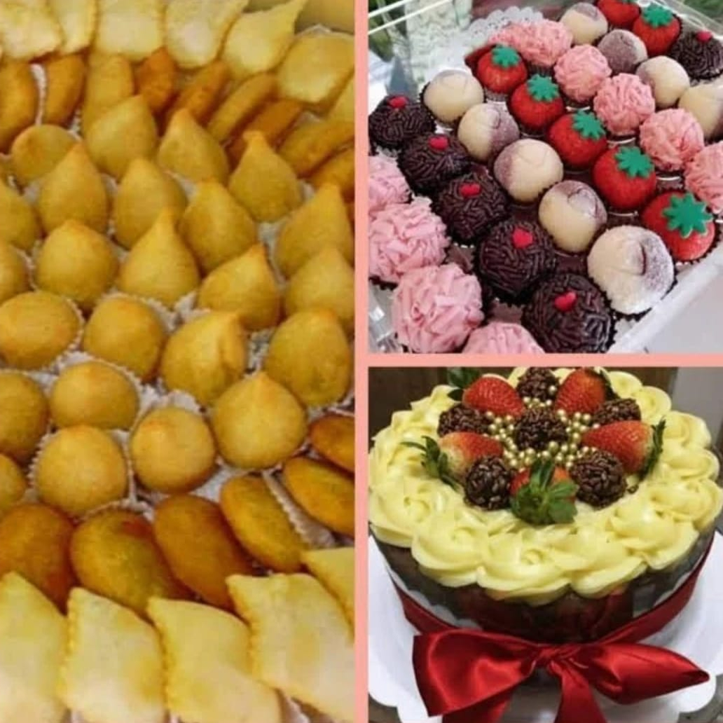bolo de 2 quilo aro 18 cm. 40 salgados sortidos, 20 doces sortidos