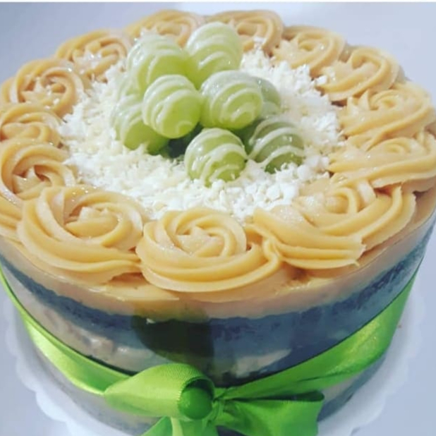 massa branca com recheio de creme ninho e pedaços de uvas verdes pesando 2 quilo