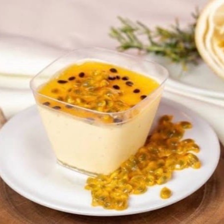 Deliciosa base de leite ninho com uma geleia de maracujá