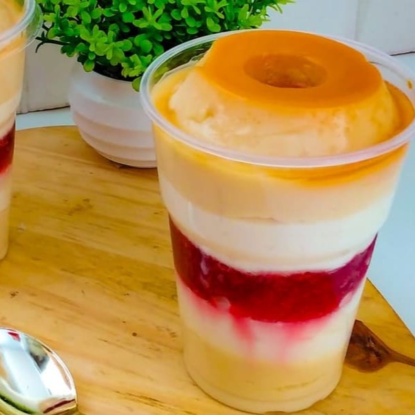 Um Combo Uma explosão de sabor em cada camada! Começamos com um creme de Ninho super cremoso, seguido por uma mousse leve de Ninho. Depois, uma generosa camada de geleia artesanal de morango, mais uma porção de mousse e creme de Ninho... E para finalizar com perfeição, um delicioso pudim lisinho e caramelizado no topo. Doce na medida certa, com aquele toque caseiro que derrete na boca!