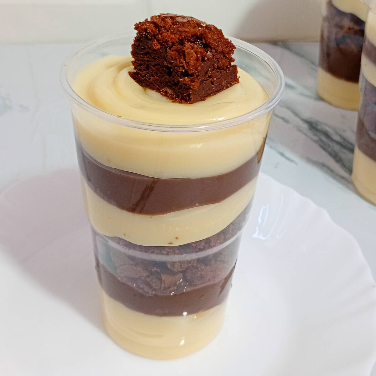 Copo da Felicidade 300ml – Uma explosão de sabores! Camadas irresistíveis de brownie macio, brigadeiro cremoso e um toque especial de mousse de maracujá, equilibrando doçura e acidez na medida certa. Finalizado com pedaços de brownie para uma experiência ainda mais deliciosa!