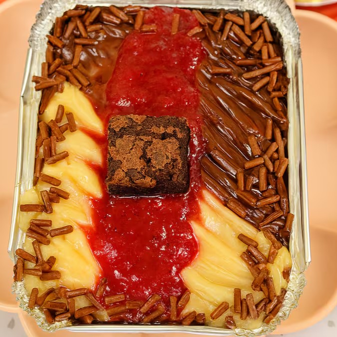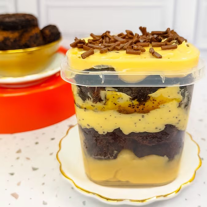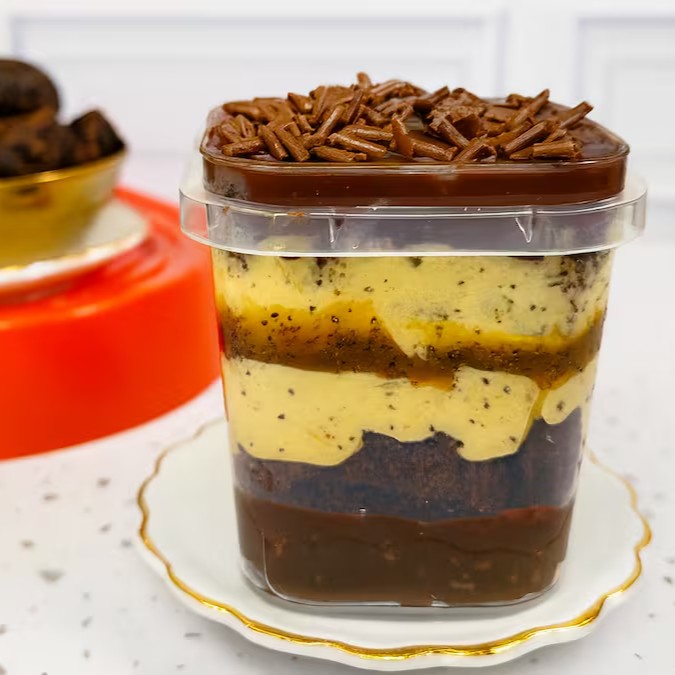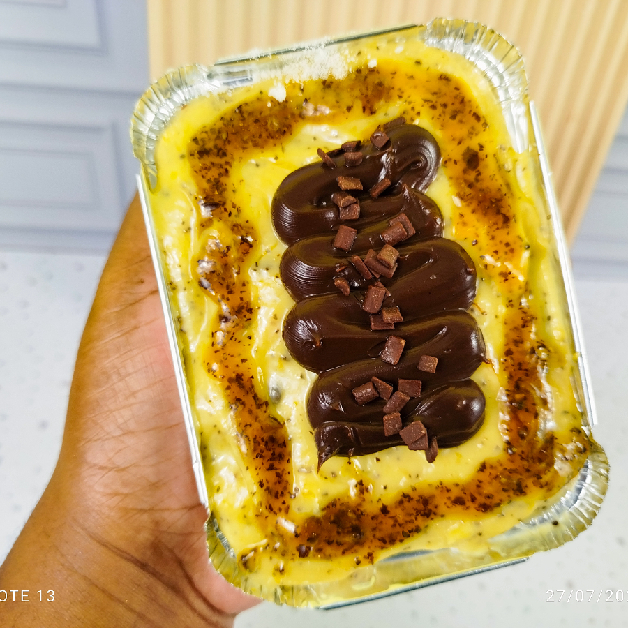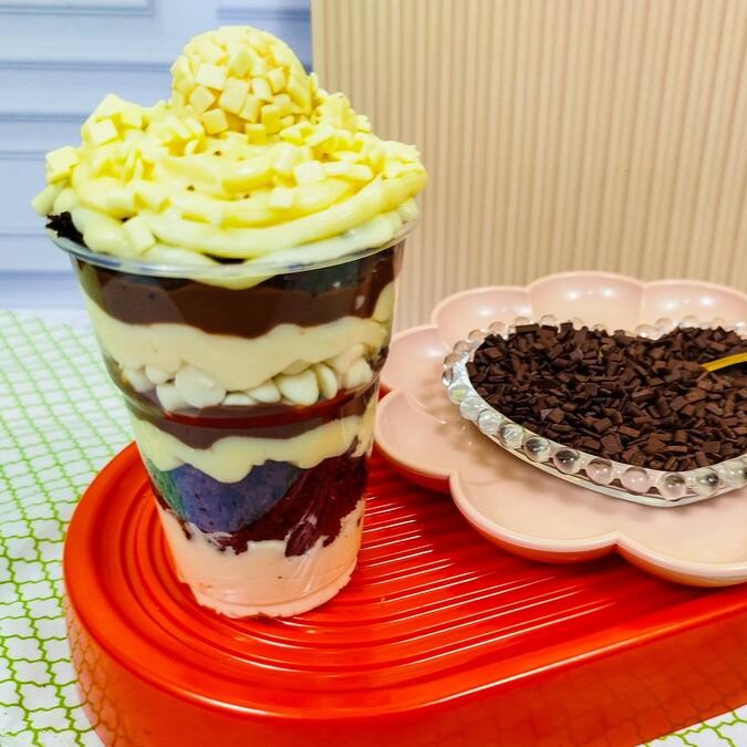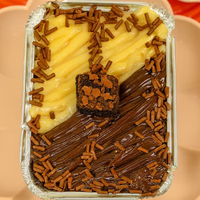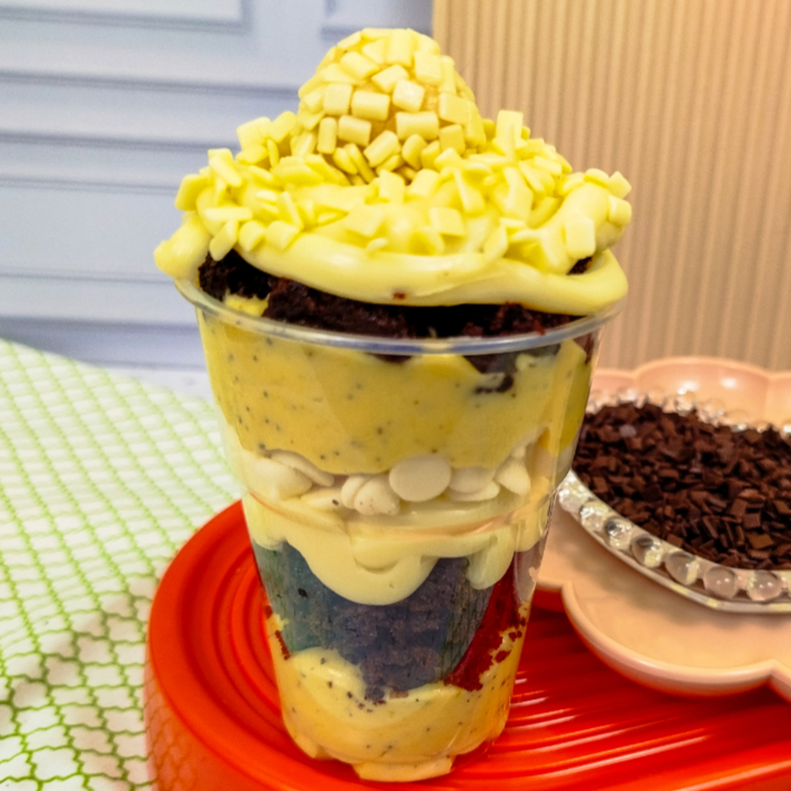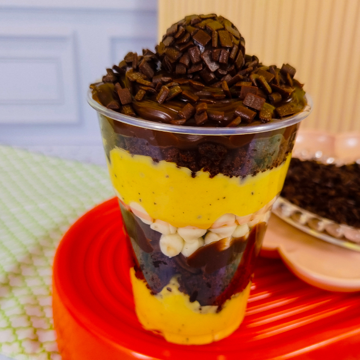 Uma explosão de sabor! Feito com massa úmida de chocolate 50% cacau, molhada com calda cremosa de leite condensado. No topo, uma camada generosa de recheio cremoso de maracujá e chocolate , finalizado com granulado de chocolate nobre que derrete na boca. Uma combinação irresistível para os amantes de chocolate!
