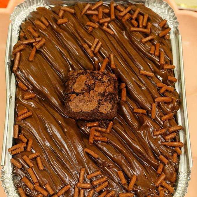 Nosso brownie é composto por uma camada de brownie com sabor intenso de chocolate, doce na medida e um toque meio amargo, coberto com uma cobertura cremosa de chocolate e finalizado com granulado de chocolate nobre.