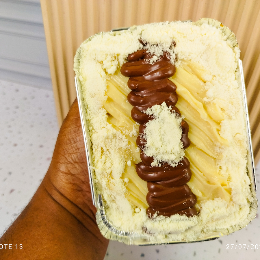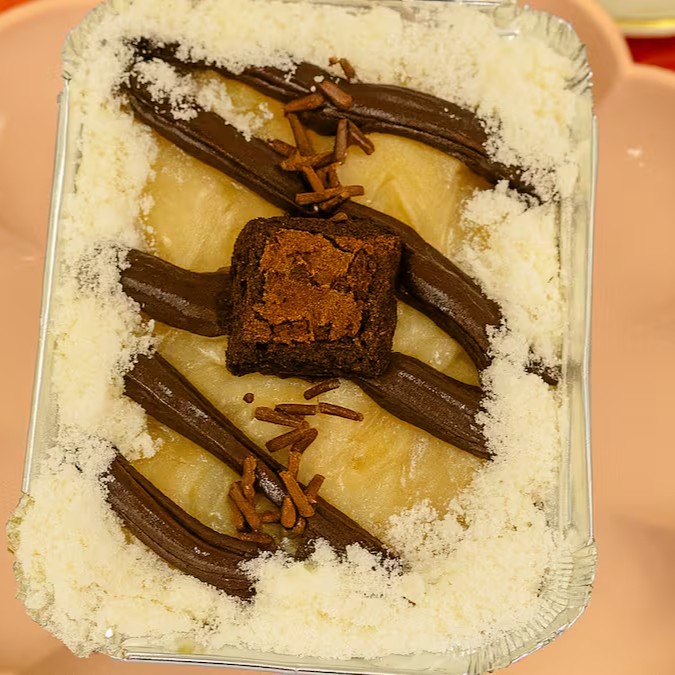 Uma explosão de sabor! Feito com massa úmida de chocolate 50% cacau, molhada com calda cremosa de leite condensado. No topo, uma camada generosa de recheio cremoso de Ninho e chocolate , finalizado com granulado de chocolate nobre que derrete na boca. Uma combinação irresistível para os amantes de chocolate!