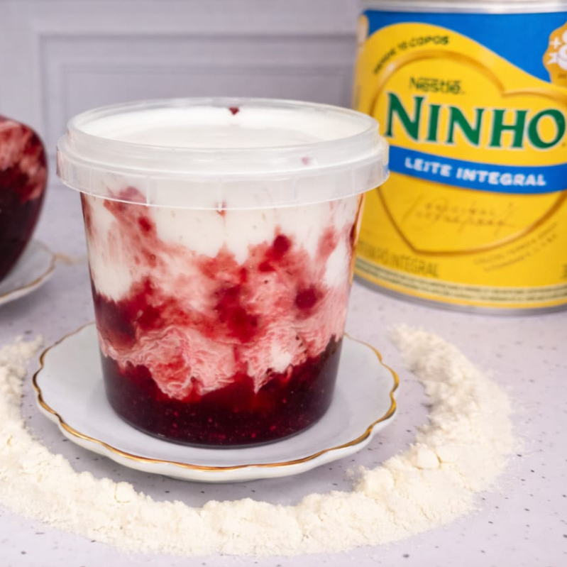 Sorvete cremoso de Ninho com uma camada generosa de geleia de frutas vermelhas Pote de 220ml
