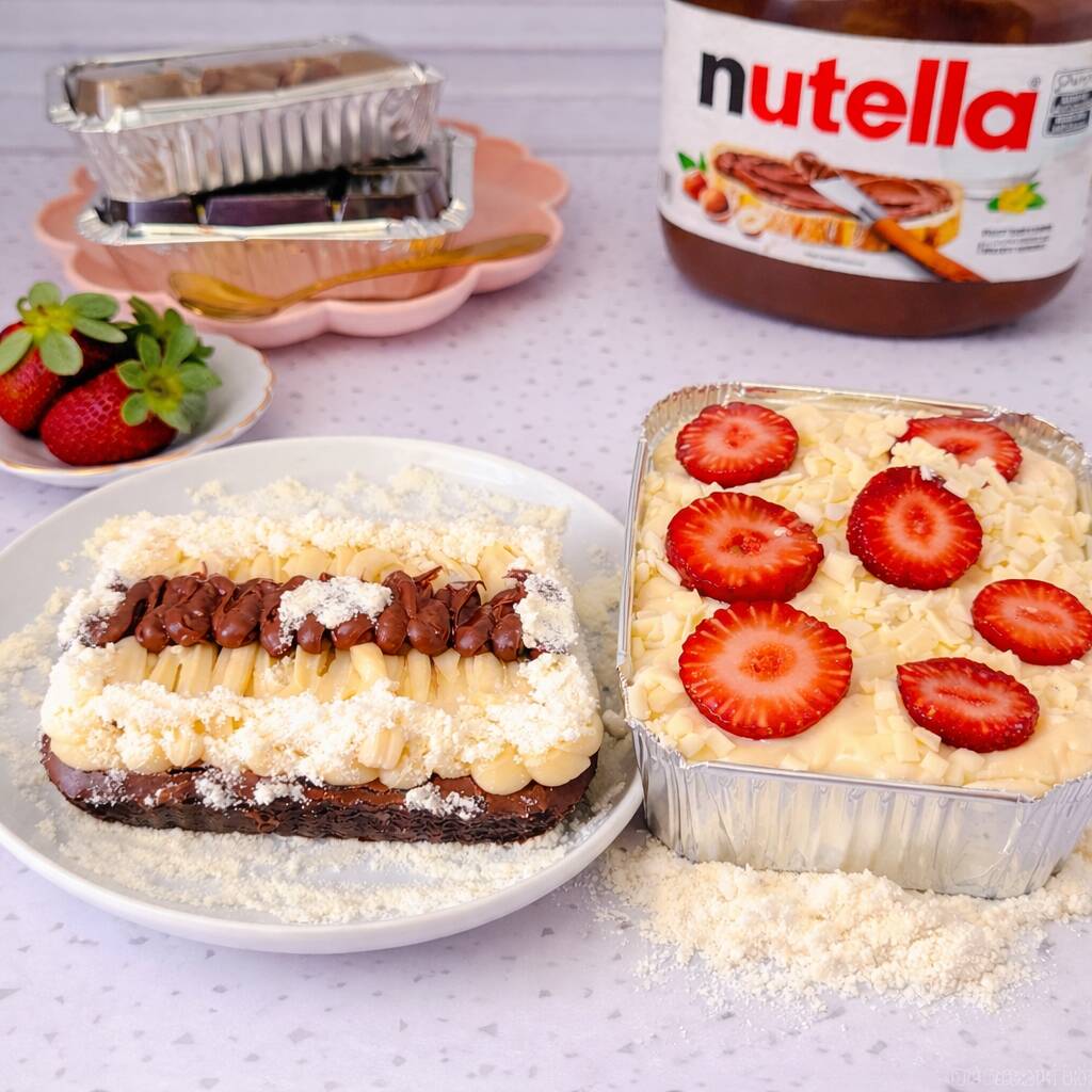 Dupla De Oferta - 1x Brownie Na Marmita Ninho Com Nutella + 1x Bolo Gelado De Chocolate Com Ninho E Morango - Faça Seu Pedido Agora Mesmo E Aproveite!!!