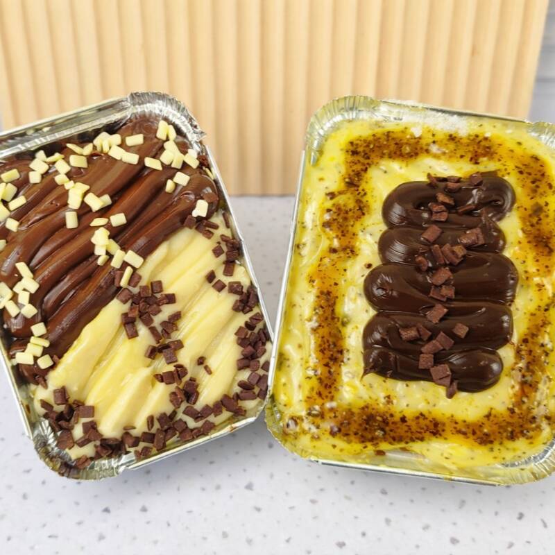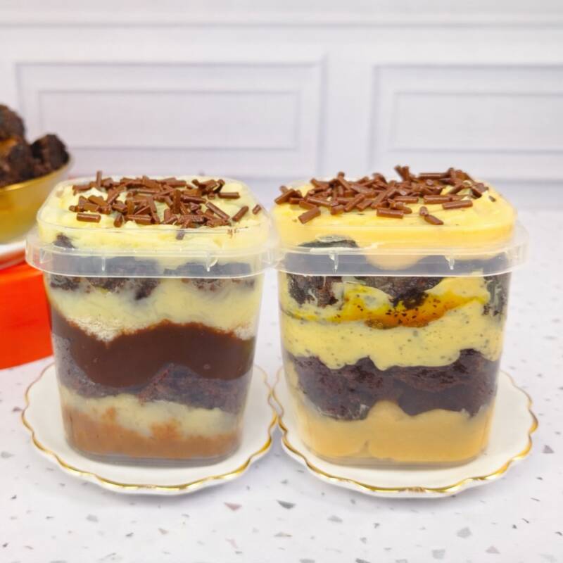 Nessa oferta você vai levar uma dupla dos doces mais vendidos!! 1 Brownie no pote Chocolatudo com maracujá - 1 Bolo gelado casadinho na marmita com desconto para você!