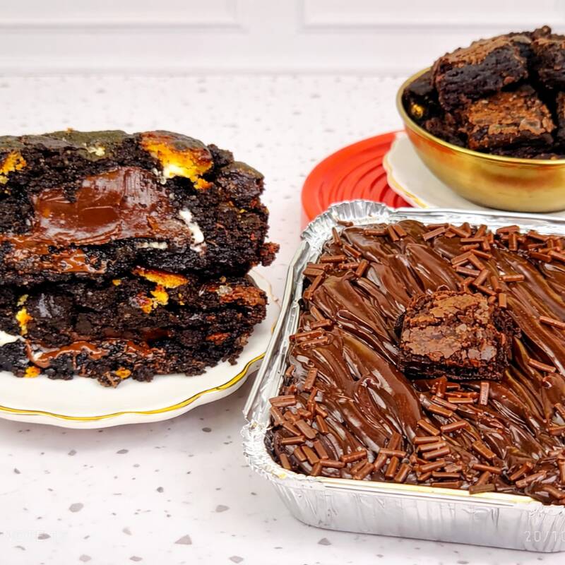 Nosso piscina brownie casadinho é simplesmente delicioso, composto por um massa de brownie com sabor intenso de chocolate, doce na medida e um toque meio amargo ,com uma cobertura de recheio cremoso de chocolate e chocolate branco na parte de cima, finalizado com 3 brigadeiro de chocolate e granulado de chocolate nobre.