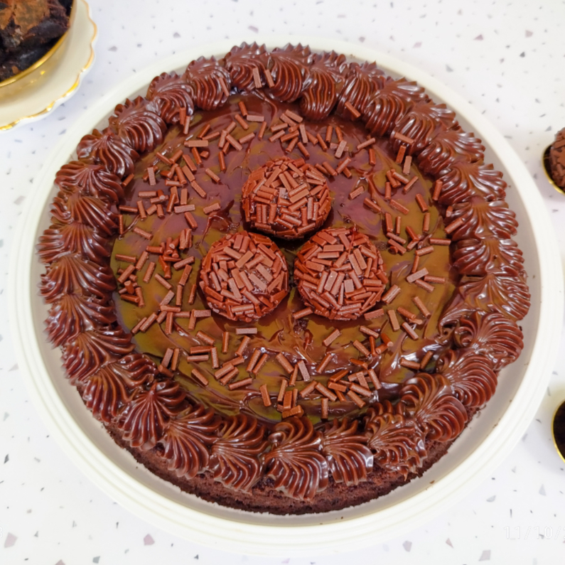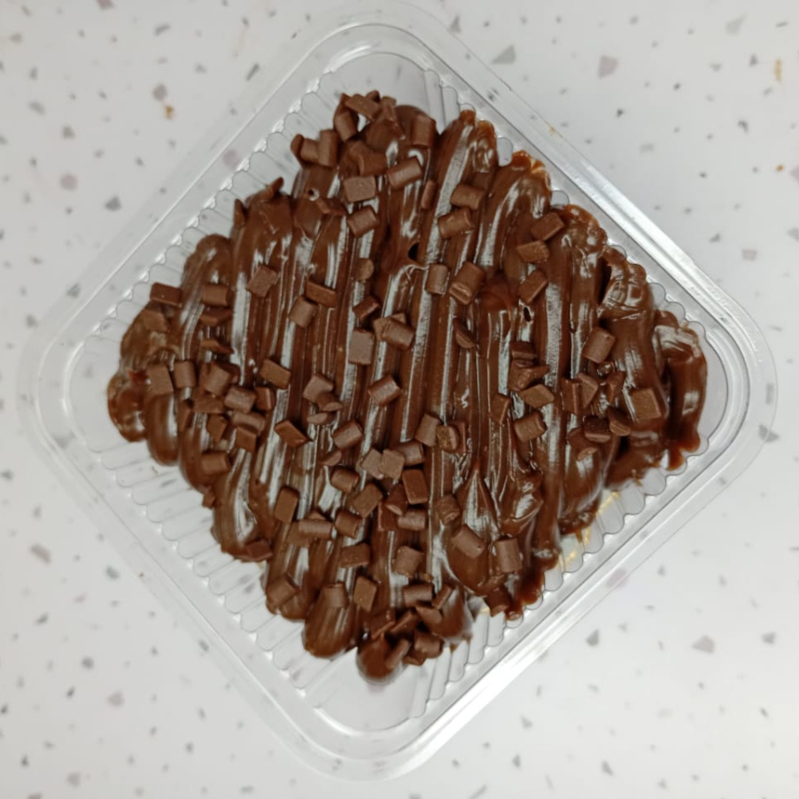 Uma explosão de sabor! Feito com massa úmida de chocolate 50% cacau, molhada com calda cremosa de leite condensado. No topo, uma camada generosa de recheio cremoso de chocolate, finalizado com granulado de chocolate nobre que derrete na boca. Uma combinação irresistível para os amantes de chocolate!