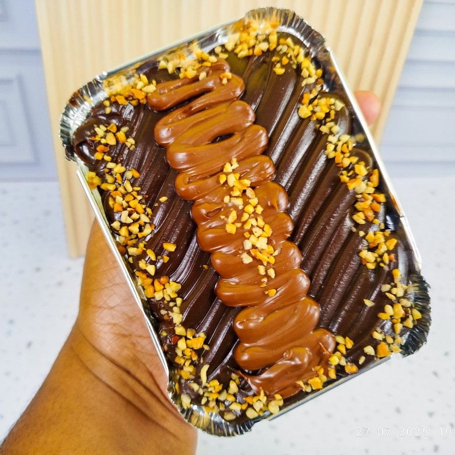Nosso brownie tem sabor intenso de chocolate, equilibrando o doce na medida certa com um leve toque meio amargo. É composto por duas camadas macias e úmidas de brownie, recheadas generosamente com um creme delicioso de chocolate, Nutella e castanha de caju — Uma combinação irresistível! Peso aproximado: 120g