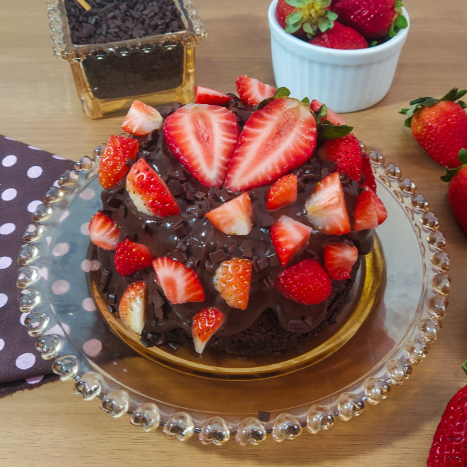 Bolo Vulcão Chocolatudo Com Morango -serve 2 Pessoa
