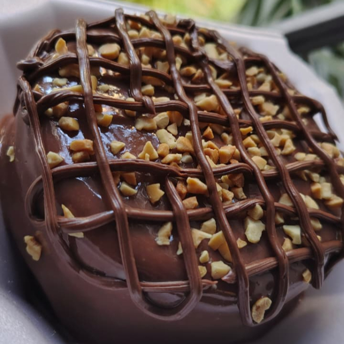 Deliciosa massa de chocolate com cobertura de chocolate 50%, amendoim granulado e Nutella. OBS: A decoração pode haver variações.