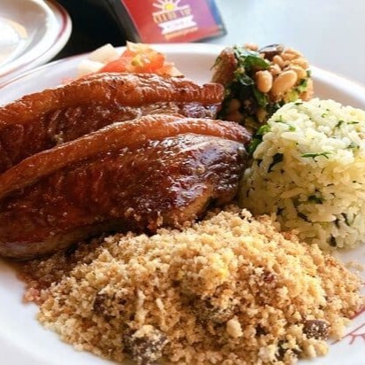 450g de Picanha, Feijão Tropeiro, Arroz Branco, Vinagrete, Purê de Batata ou Aipim.