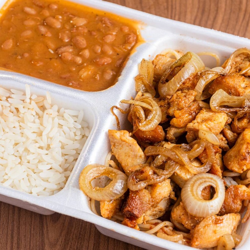 Deliciosas refeições caseiras, Confira nosso cardápio e aproveite! Acompanha: Arroz, Feijão de Caldo, Macarrão e Isca de Frango acebolado.