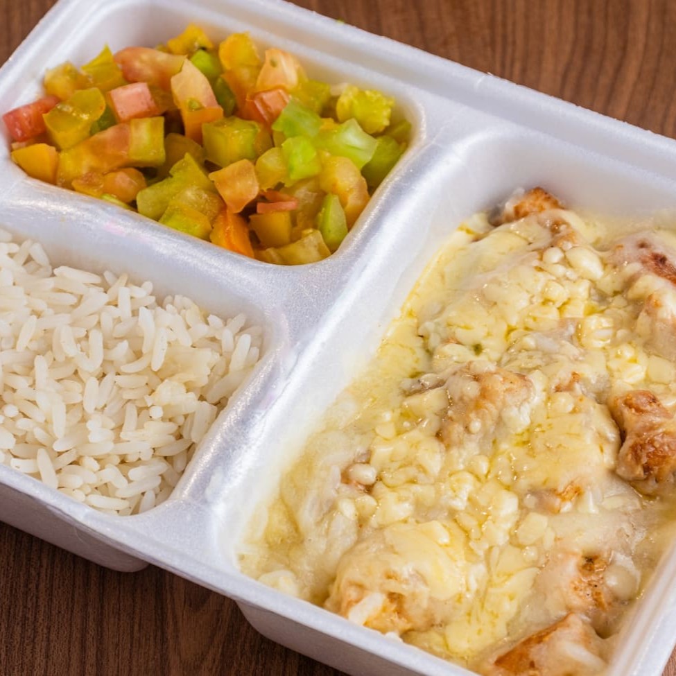 Marmita de Pirão de Aipim com Frango com muçarela derretido, um encontro perfeito de sabores e texturas. Acompanhado de arroz leve e salada vinagrete. ‘’Peça já e desfrute das nossas Marmitas com Divisórias que lhe da uma experiência única em cada garfada! Peça agora e mergulhe nessa experiência irresistível! #Pirãodeaipim #Frango #Arroz #Salada # #Delivery #Pirãodeaipim #Frango #Arroz #Salada # #Delivery