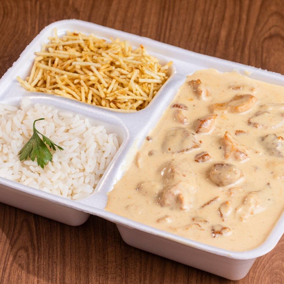 Strogonoff de Frango Experimente nossa marmita de Strogonoff de Frango suculento, cremoso e irresistível: acompanhado de arroz da vovó e batata palha crocante. ‘’Peça já e desfrute das nossas Marmitas com Divisórias que lhe da uma experiência única em cada garfada! #Strogonoff #Marmita #Comidacaseira # entrega rápida. Peça agora! #Strogonoff #Frango #Marmita #Entregarápida #Comidacaseira # #Delivery