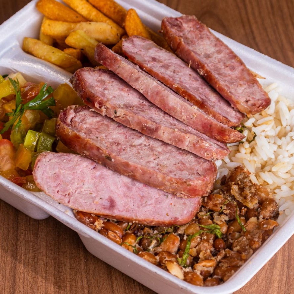 Calabresa Acebolada + Coca Cola 250ml Acompanha: Arroz, Feijão de Caldo, Macarrão Calabresa Acebolada ‘’Peça já e desfrute das nossas Marmitas com Divisórias que lhe da uma experiência única em cada garfada!