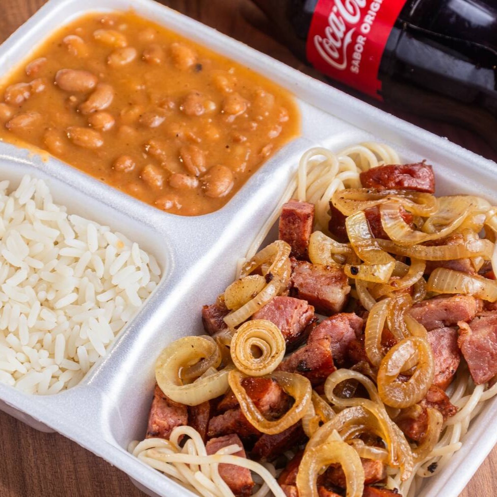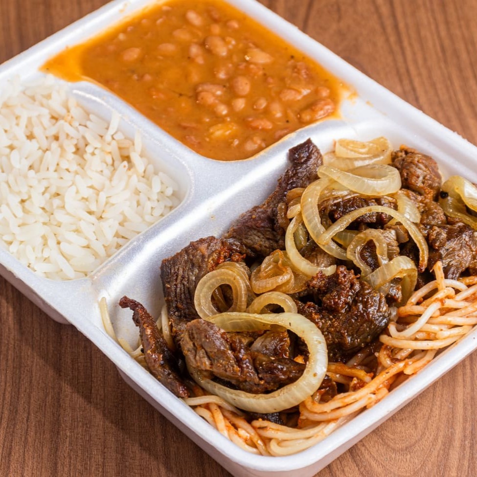 Deliciosas refeições caseiras, Confira nosso cardápio e aproveite! Acompanha: Arroz, Feijão de Caldo, Macarrão e Isca de carne Acebolada. ‘’Peça já e desfrute das nossas Marmitas com Divisórias que lhe da uma experiência única em cada garfada!