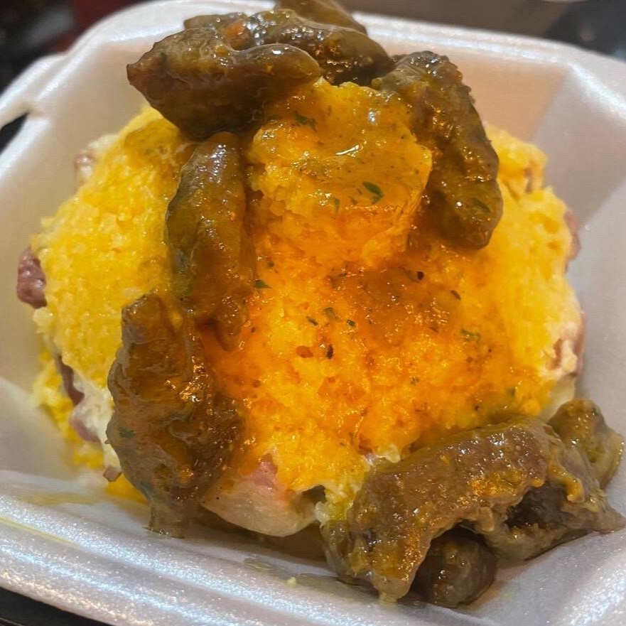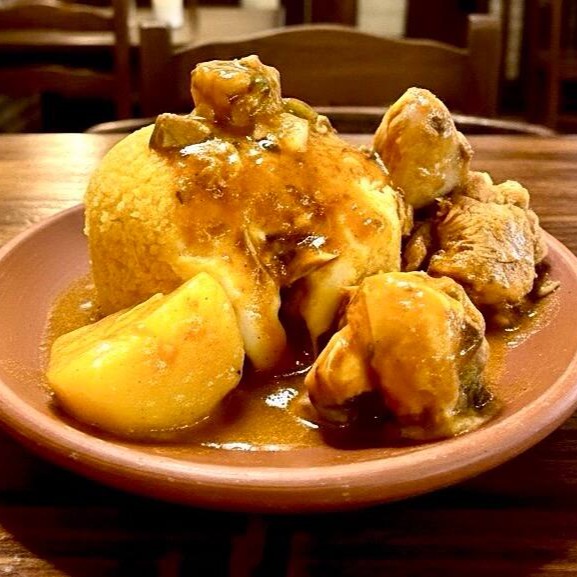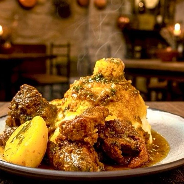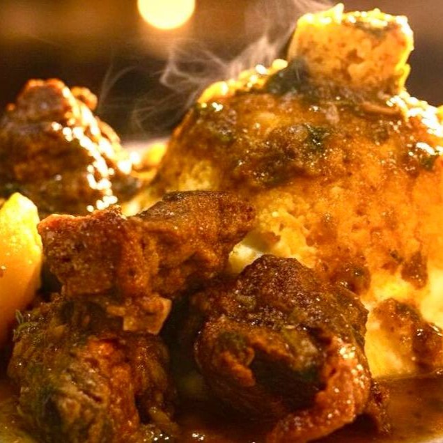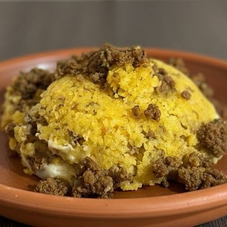 Delicioso cuscuz acompanhando com ensopado de carne.
