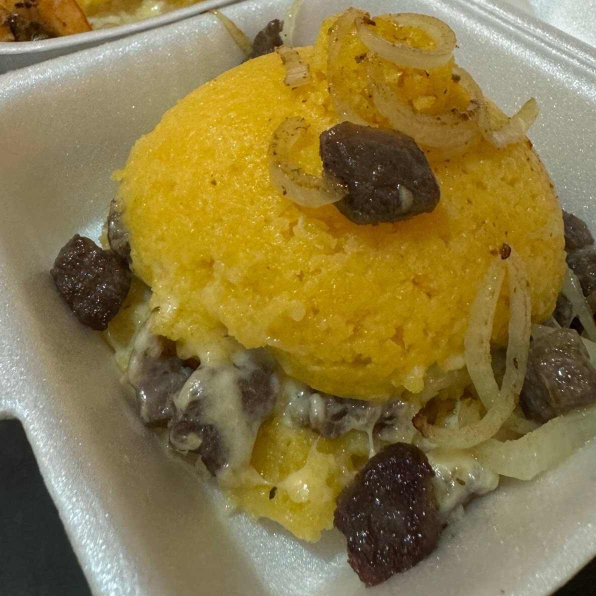 Experimente o cuscuz com filezinho de carne bovina, uma opção suculenta e cheia de sabor.