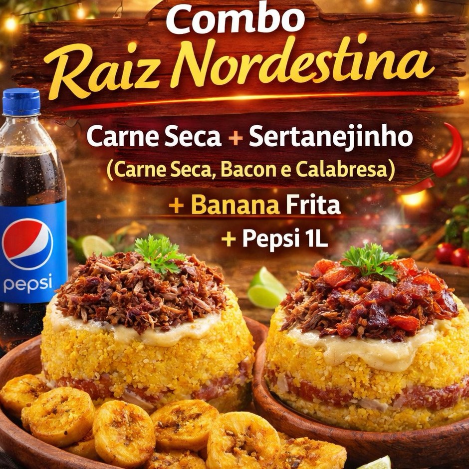 Combo Raiz Nordestina (1 Carne Seca+1 Sertanejinho (carne Seca, Bacon E Calabresa)+banana Frita+quijo Mussarela)