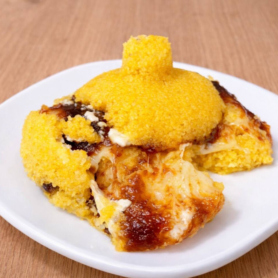 Delicie-se com o cuscuz de lombinho, uma opção suculenta e cheia de sabor. Já incluso o queijo mussarela e o creme cheese.