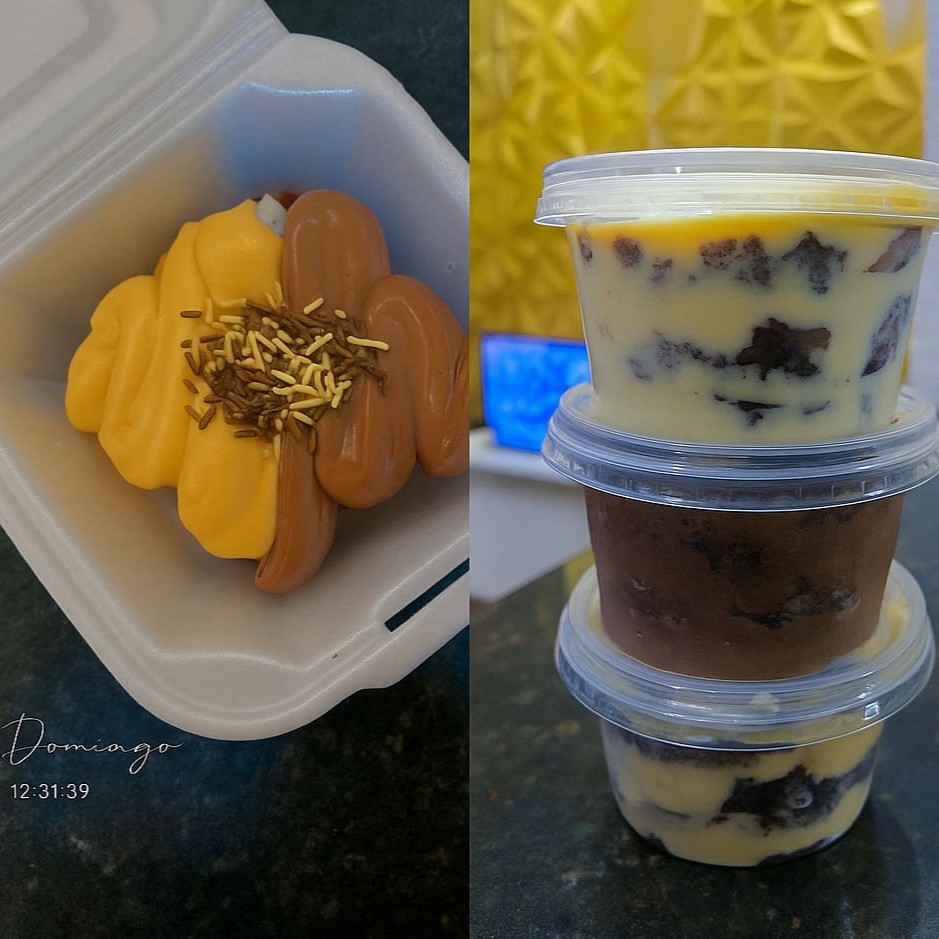 Delicioso pavê com biscoito maizena e recheio de chocolate e Ninho, E brownie super chocolatudo com recheio de choconinho.