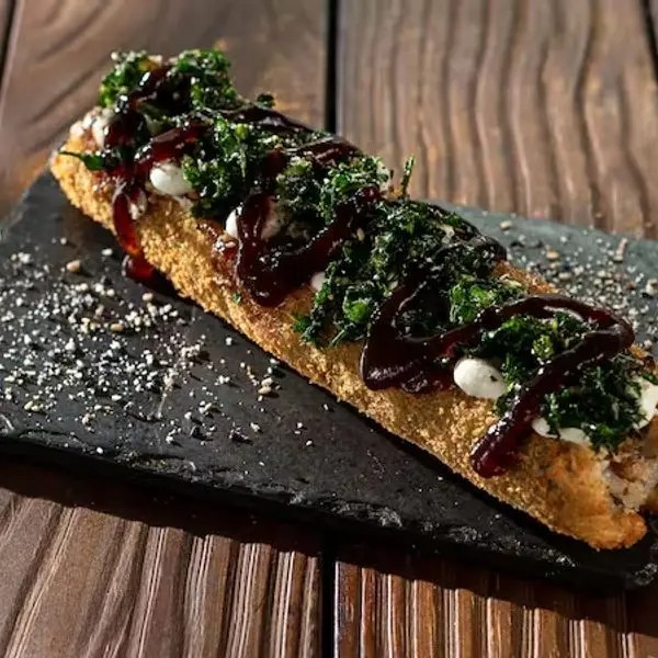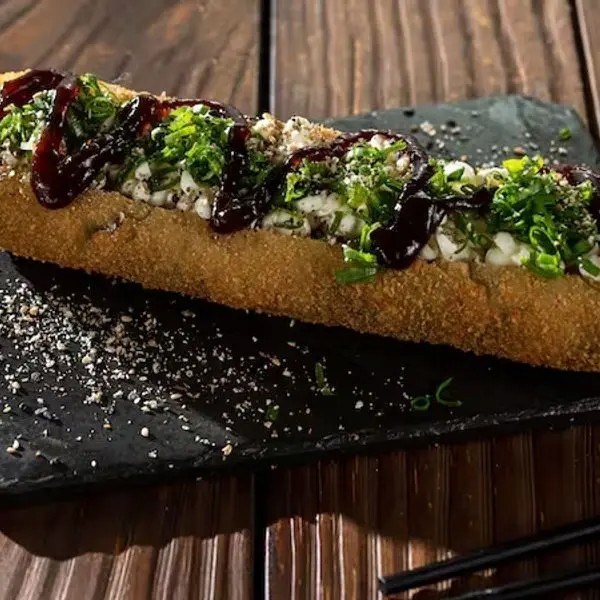 - Hot Roll empanado e frito - Recheio patê de kani - Cream Cheese por cima - Cebolinha - Gergelim - Tarê