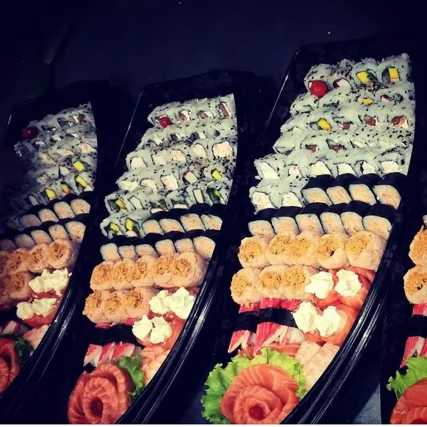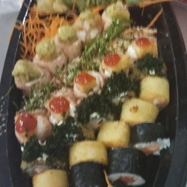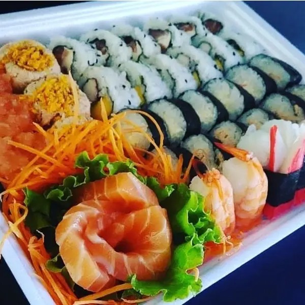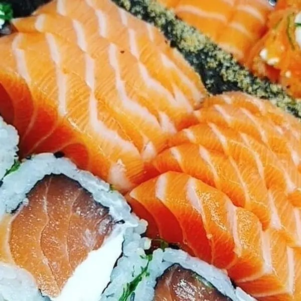 3 sashimi 4hossomaki salmão grelhado 4 Uramaki tropical 4 uramaki camarão 4 acelga salmão grelhado 2 niguiri kani 3 niguiri salmão 2 joy camarão 4 hossomaki salmão fresco 10 hot phila