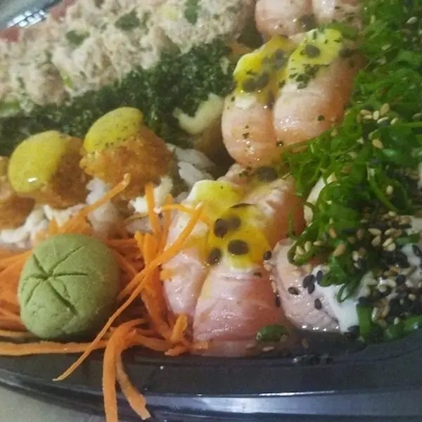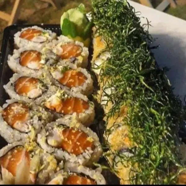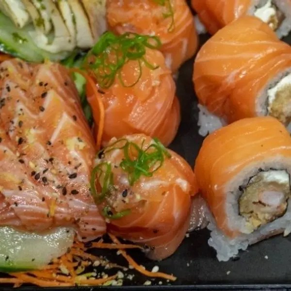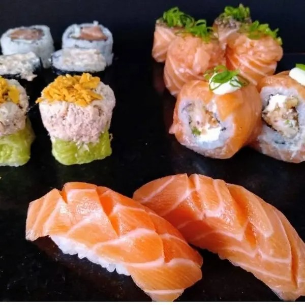 10 hot holl 5 shake couve 5 niguiri maçaricado 5 acelga maki 5 hossomaki salmão grelhado