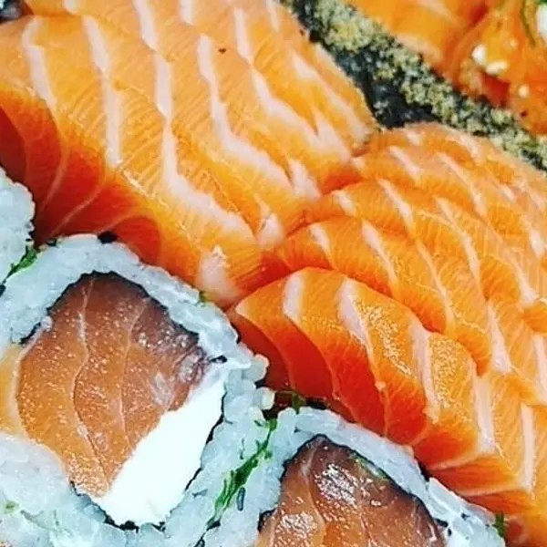 3 uramaki de salmão 3 uramaki kani 2 hossomaki salmão grelhado 2 acelga maki 2 joy salmão 2 niguiri salmão 2 joy camarão