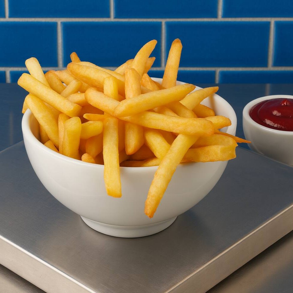 Batata média 120gr aproximadamente. Batata frita crocante levemente salgadas. Acopanhar catchup em copinho.