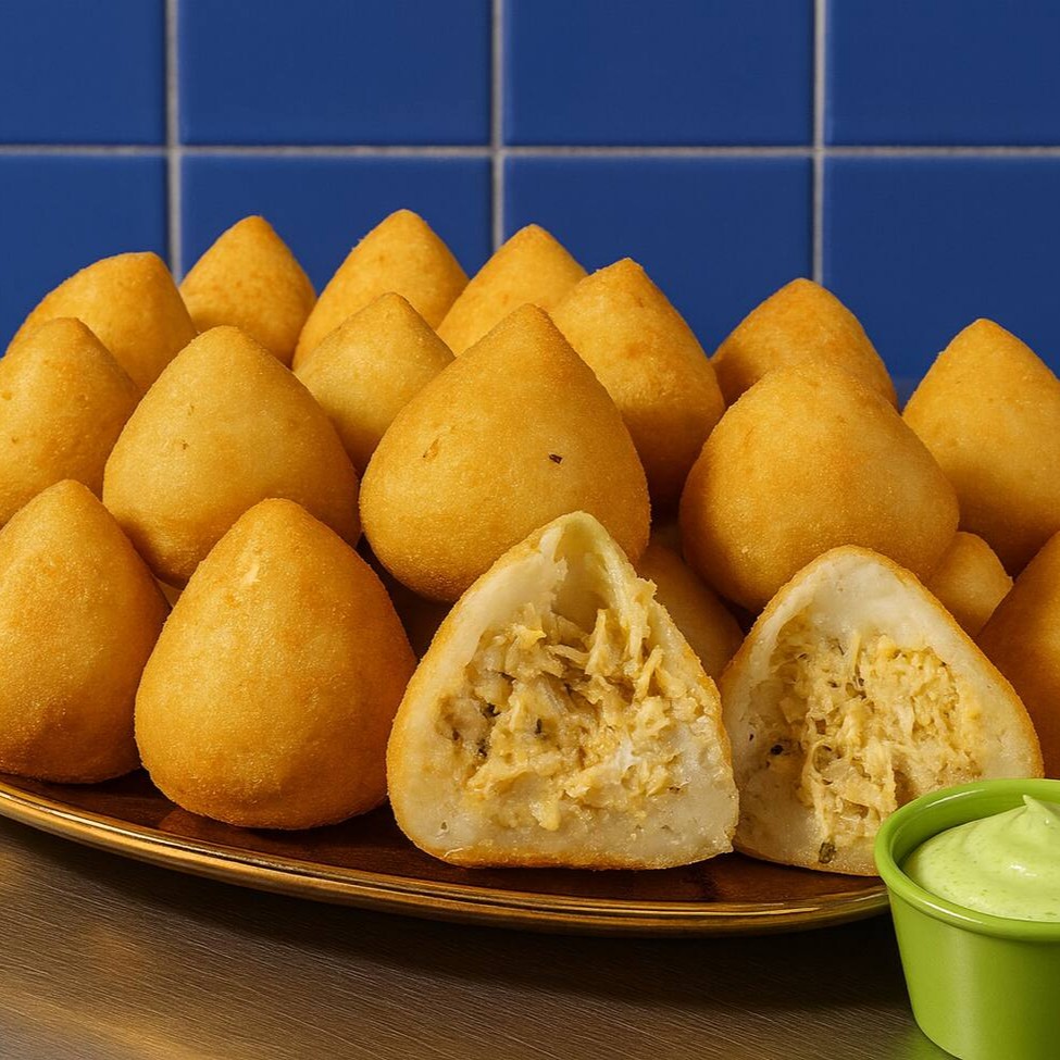 Porção de coxinha caseiras. Feita com sabor caseiro. Enrolado na farinha panco. Acopanhar maionese verde em potinho. #coxinha #salgados #pastel #hambúrguer #salgados #pastel #comidabrasileira #hambúrguer
