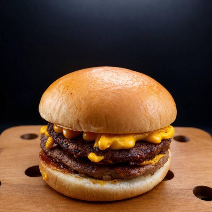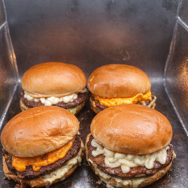 Pão smart selado na manteiga, 02 hambúrguer bovino de 56gr cada, 02 camadas de cheddar cremoso original, cebola caramelizada e molho barbecue.