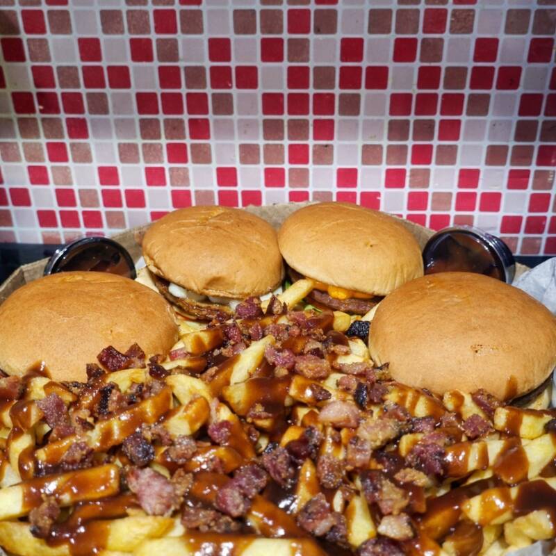 Acopanhar 04 deliciosos hambúrguer sendo 02 de cheddar e 02 de catupiry. + molho especial da sua escolha (maionese verde, baconese, molho de cheddar, mostarda e mel e molho americano.) + batata goumet + pet 1lt grátis.