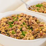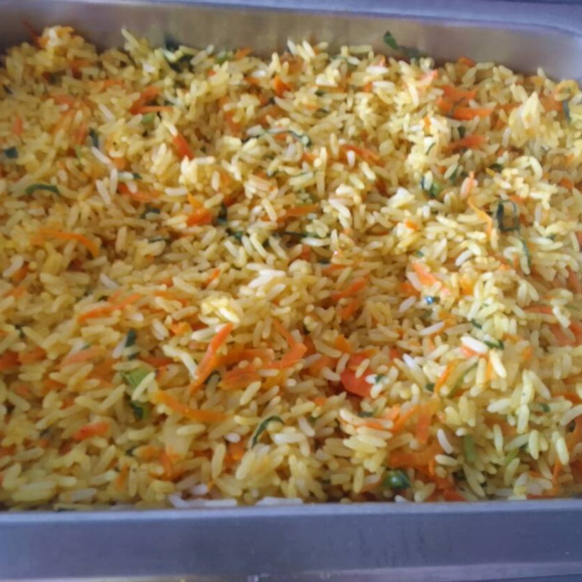 Arroz, feijão tropeiro, macarrão, farofa e vinagrete