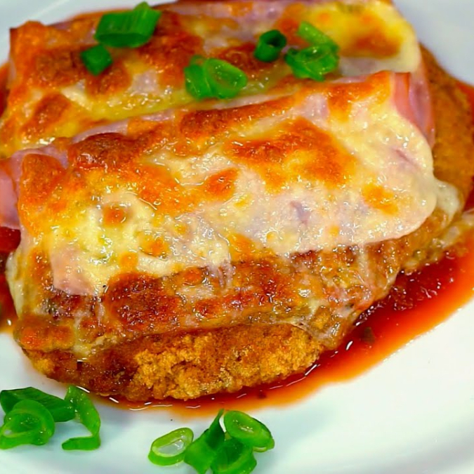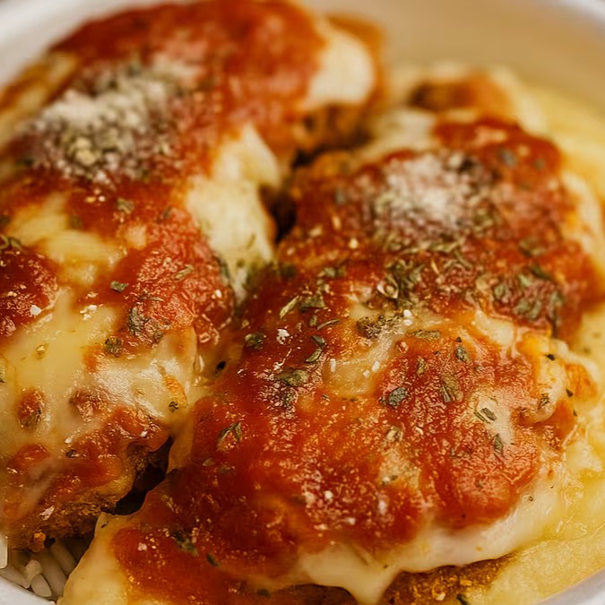 Prato composto pelo bife de carne empanado coberto com queijo mussarela, finalizado com molho de tomate, orégano e queijo ralado servido com arroz soltinho, feijão caseiro, macarrão ao alho e óleo e um cremoso purê de batata. Uma refeição completa, saborosa e feita para matar a fome com muito sabor! Marmita indicada para 01 pessoa.