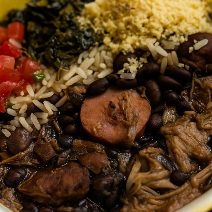 Marmita feijoada magra individual (arroz branco, costelinha, linguiça calabresa, couve refogado, farofa). Marmita indicada para 01 pessoa.