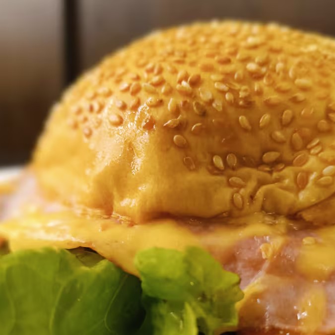 O 'Americano' é um deslumbrante sanduíche que pertence à categoria 'Lanches e Sanduíches'. Este deleite gastronômico é cuidadosamente montado com um pão de hambúrguer macio e fresco, realçado com generosas fatias de queijo e presunto de alta qualidade. Acrescenta-se a essa combinação um ovo perfeitamente cozido, acrescentando uma camada extra de sabor e textura. Para completar, alface crocante e tomates frescos e suculentos são adicionados, garantindo um equilíbrio perfeito de sabores. Uma refeição saborosa e satisfatória que vai fazer você querer mais!