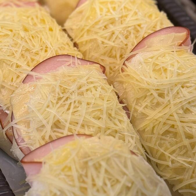 Promoção do nosso carro chefe: Pão Francês quentinho e crocante mais queijo e presunto pra acompanhar !