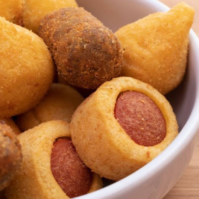 Experimente nossas deliciosas e crocantes mini coxinhas.