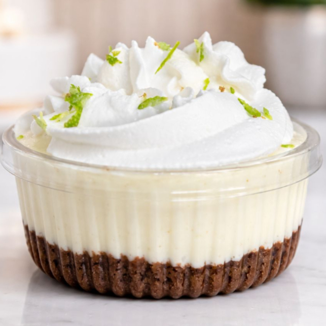 Creme de limão bem leve, base crocante e cobertura cremosa com raspas de limão.